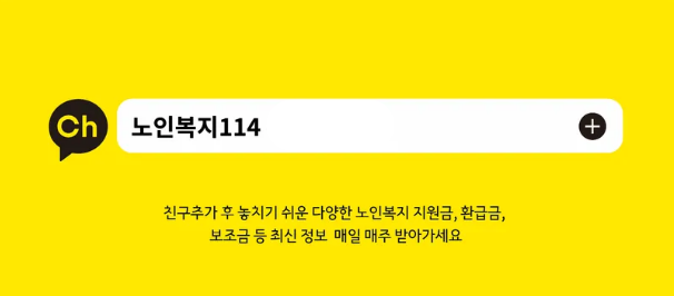 노인 지원금 등 다양한 노인 복지 최신소식에 대해서 빠르게 받고 싶으신 분은 카톡채널 추가를 해주세요. 놓치지 않고 신청하실 수 있습니다.