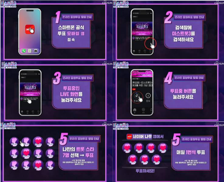 실시간 문자 투표는 방송 중에만 가능하니 시간을 꼭 확인하세요!